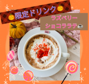 只今の限定ドリンクはラズベリーショコララテです![]()